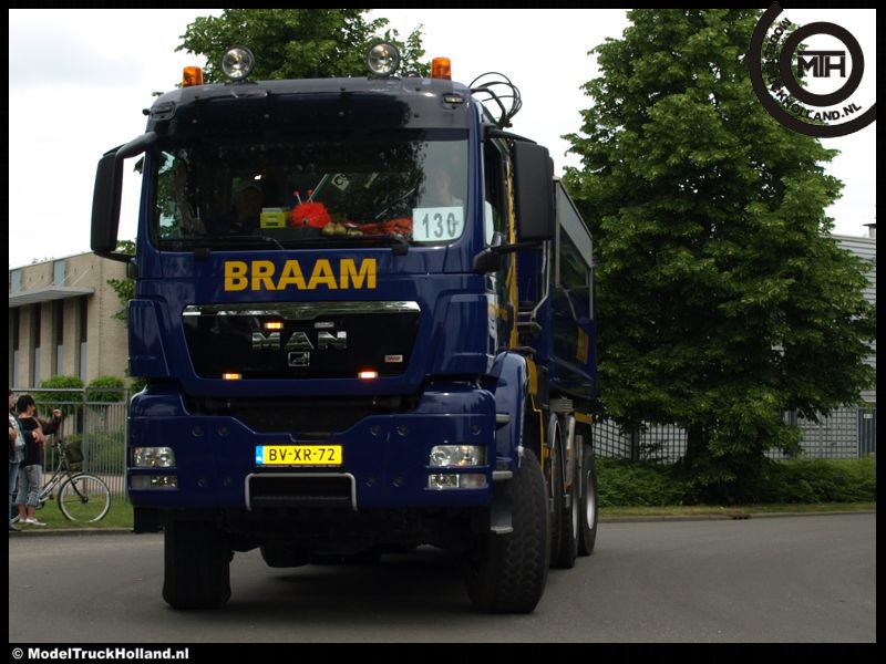 TRUCKRUN BEUNINGEN (deel 3) Dit jaar werd er op 13 juni weer voor de 18e keer een truckrun georganiseerd door de Truckerskonvooi Bolderhof uit Beuningen.Er werd om ca. 12.00uur vertrokken vanaf het industrieterrein "De Schoenaker" in Beuningen, waarna de lange stoet van meer dan 130 vrachtwagens ging door o.a. Beuningen, Ewijk, Winssen, Deest, Afferden, Druten. Zo'n veertig vrijwilligers, motorrijders, het Rode Kruis, diverse gemeentelijke organisaties en, niet te vergeten, de sponsors, ondersteunen het bestuur van het Truckerskonvooi. Wat ooit startte met 75 trucks, startend vanaf het Boldershofterrein in Druten, is inmiddels uitgegroeid tot een imposante stoet van ca. 150 wagens van deelnemende organisaties, die gezien de huidige omvang sinds het jaar 2000 starten vanaf het industrieterrein 'De Schoenaker' in Beuningen. |